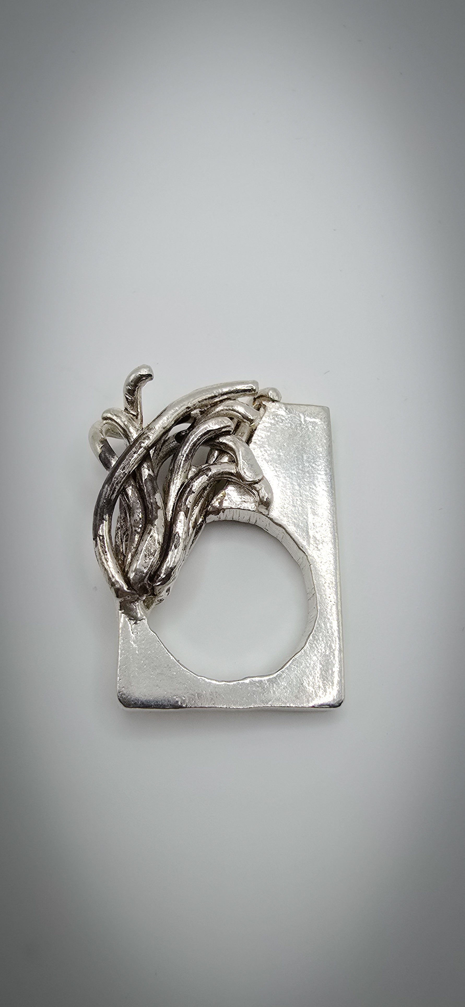 Squiggle heavy sculptural ring in non-tarnish sterling silver. Size 6