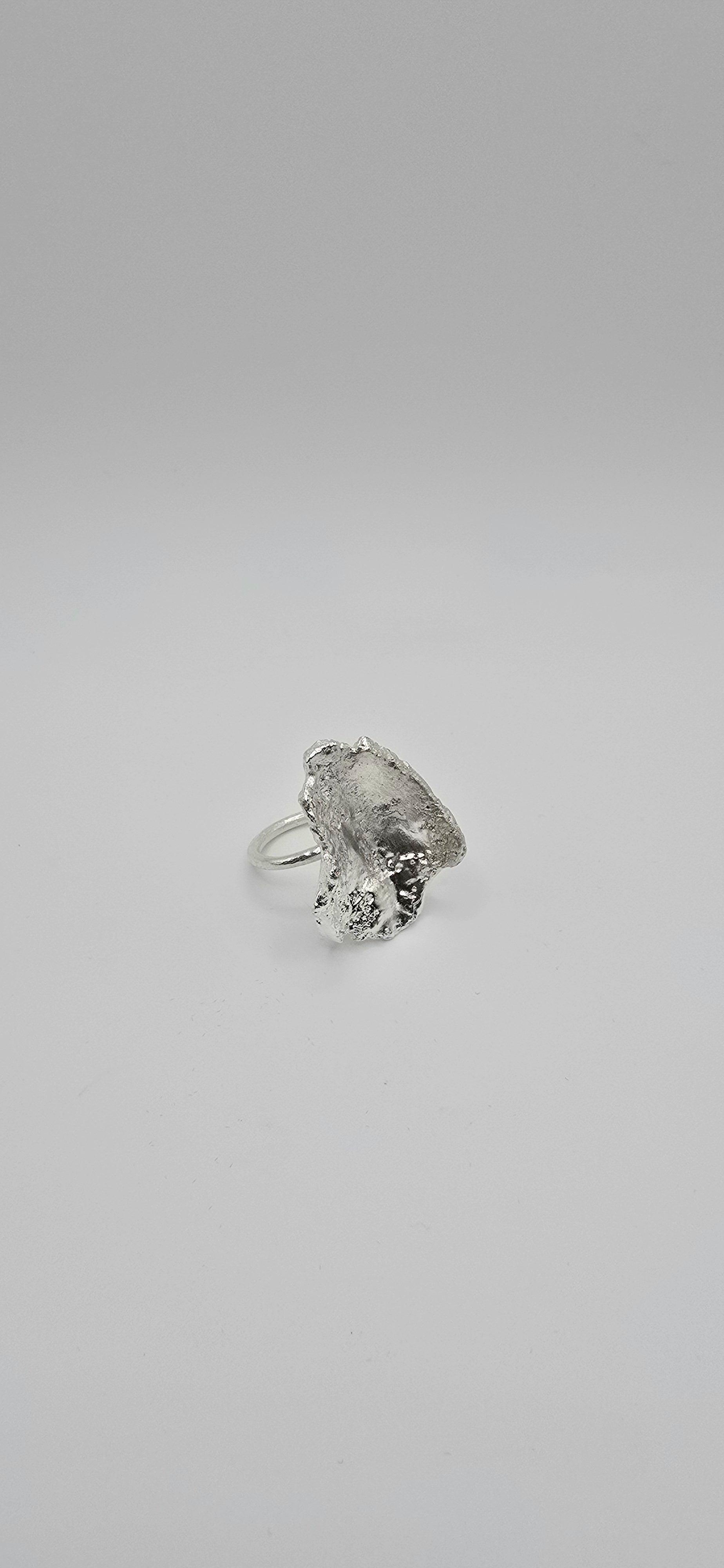 Non tarnish sterling silver ring. A sculptural fragment bearing the trace of pressure and transformation. Not untouched but not broken.