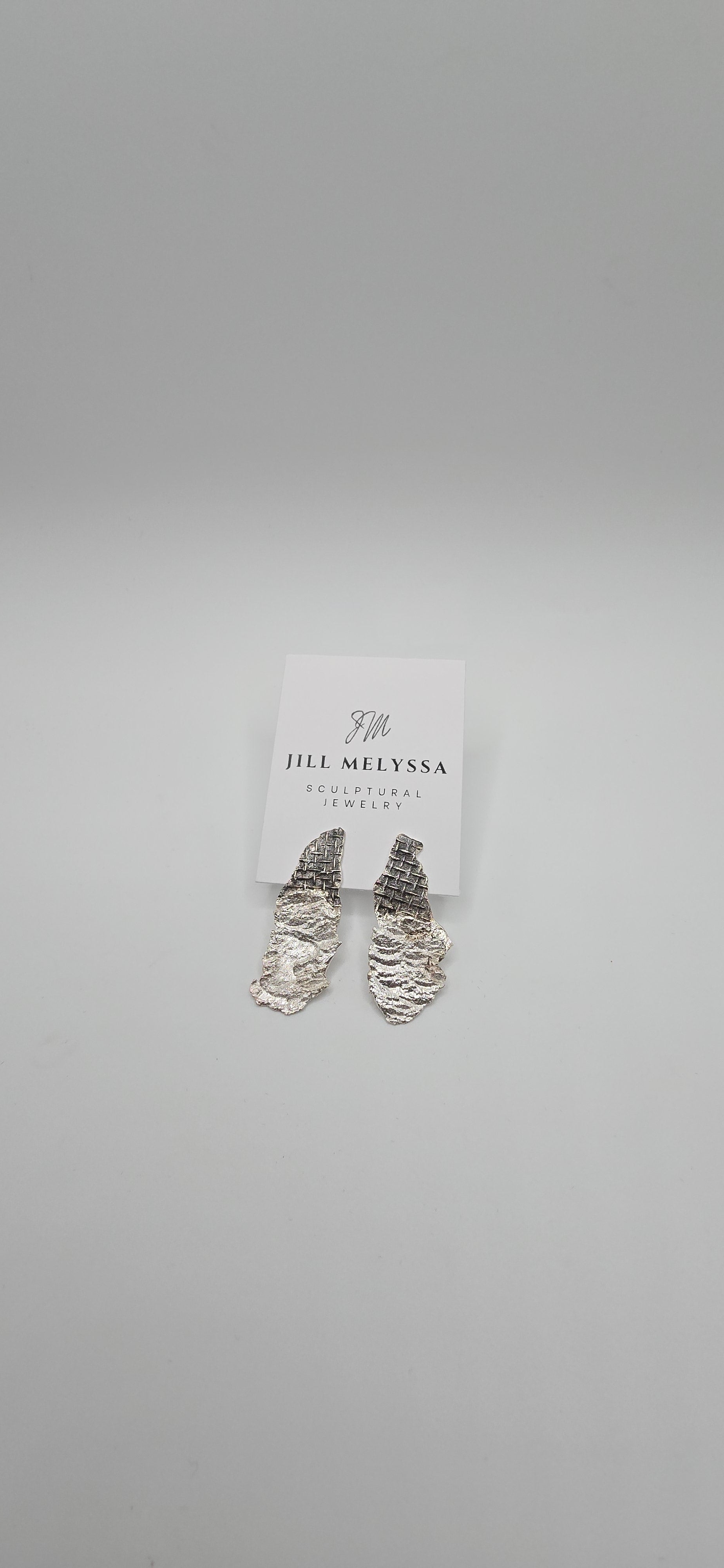 Sterling Silver Mesh Textured Earrings- Hand Fabricated Urban Freeform Statement Ring- Under Impact Series